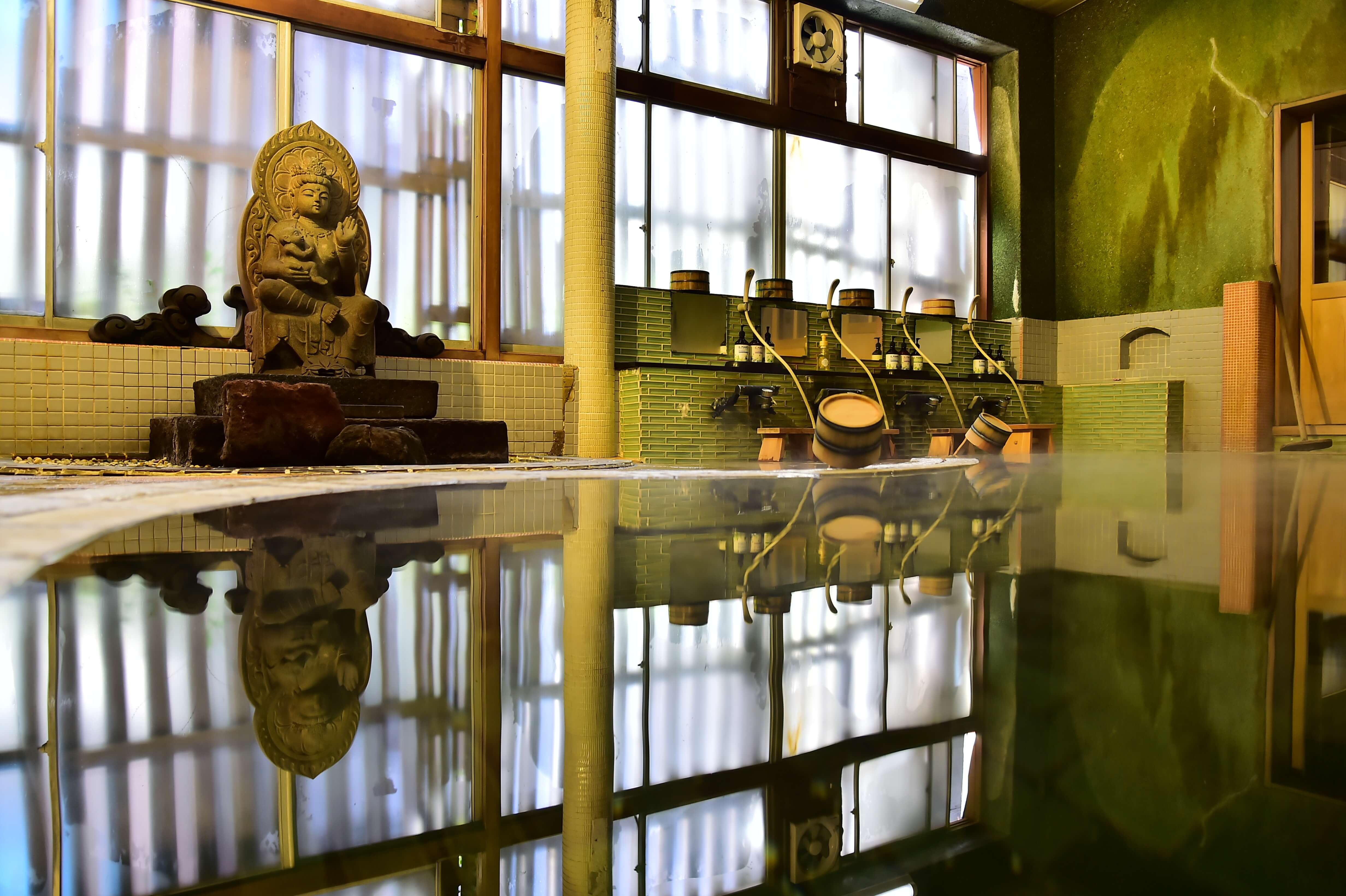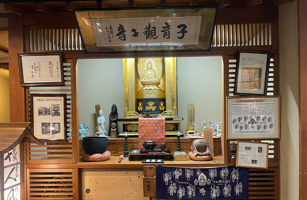 大浴場「千人風呂」の前に奉られている子育て観世音。