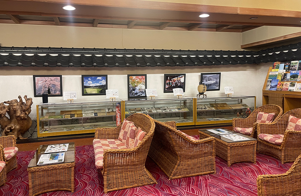 ロビーには、野沢温泉と常盤屋旅館の歴史を伝える資料・写真の展示コーナーを設けています。